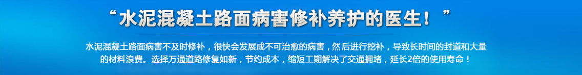 水泥混凝土修補(bǔ)專家----萬通新源中國專業(yè)水泥混凝土修補(bǔ)料材料供應(yīng)商!水泥混凝土修補(bǔ)料專門針對(duì)水泥混凝土路面的麻面、空鼓、起皮、脫殼、裂縫、漏筋等病害進(jìn)行及時(shí)修補(bǔ),直接涂抹在病害部位即可,有好的抗壓和粘接強(qiáng)度,可實(shí)現(xiàn)薄層修補(bǔ),在高速和高壓的行車狀態(tài)下不會(huì)出現(xiàn)破碎和脫落現(xiàn)象;凡是水泥混凝土表面病害均適用于本材料。